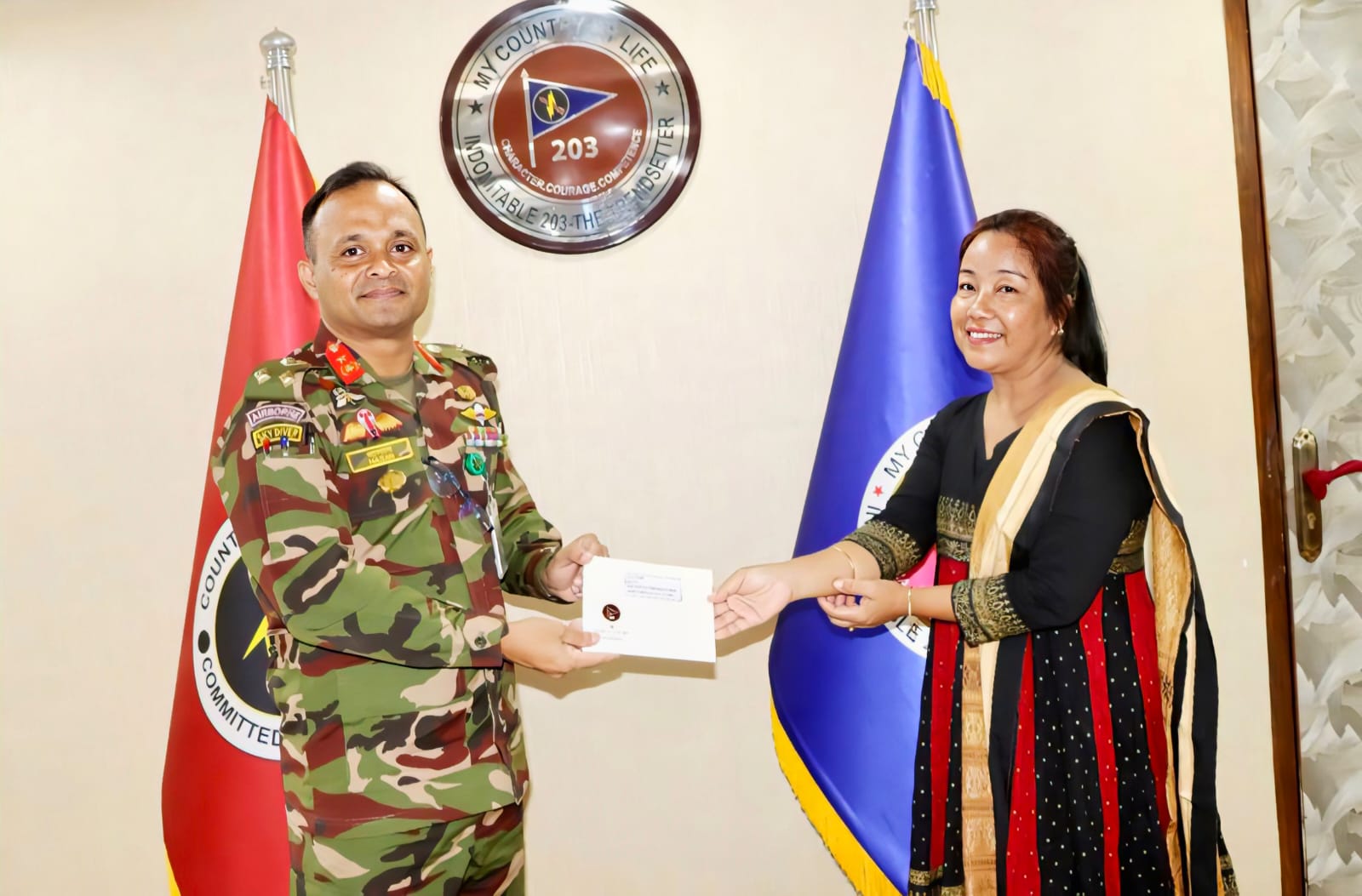 আসন্ন শারদীয় দুর্গাপূজা সুষ্ঠুভাবে উদযাপনের লক্ষ্যে বাংলাদেশ সেনাবাহিনীর ২০৩ পদাতিক ব্রিগেড ও খাগড়াছড়ি রিজিয়নের উদ্যোগে জেলার ২৯টি পূজা মণ্ডপে শুভেচ্ছা উপহার প্রদান করা হয়েছে।