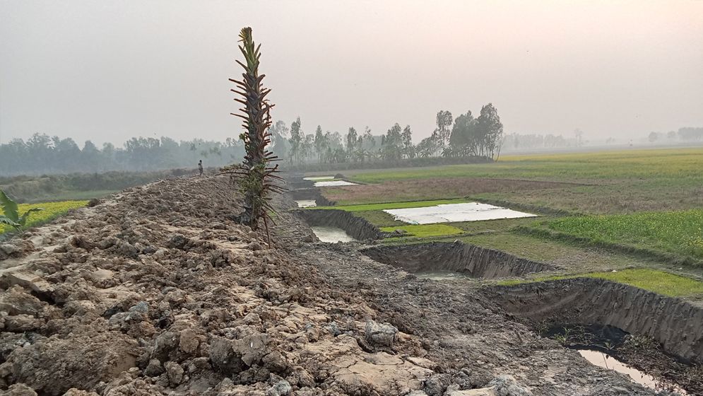 সম্প্রতি সরেজমিন দেখা যায়, রাস্তার দুপাশে ভেকু দিয়ে ফসলি জমি গর্ত করে মাটি কেটে রাস্তায় ফেলা হচ্ছে। এতে সরিষা, ধান, পেঁয়াজ, রসুনসহ বিভিন্ন ফসলের ক্ষতি করা হচ্ছে।